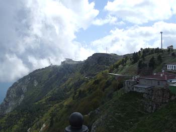 На Гору Айпетри 1234 метра, дорога же намного длиннее, с вершины вид на Ялту, и облака внизу… Холодно, но красиво!! Облака, кажется, можно трогать руками. У всех нас просто детский восторг, все довольные и улыбаются. Тяжело пришлось только чопперу – на подъеме на гору от него начал отваливаться нефункциональный хром. С его остатками пришлось бороться с помощью ножовки. Проводивший операцию Серега хитро улыбался…